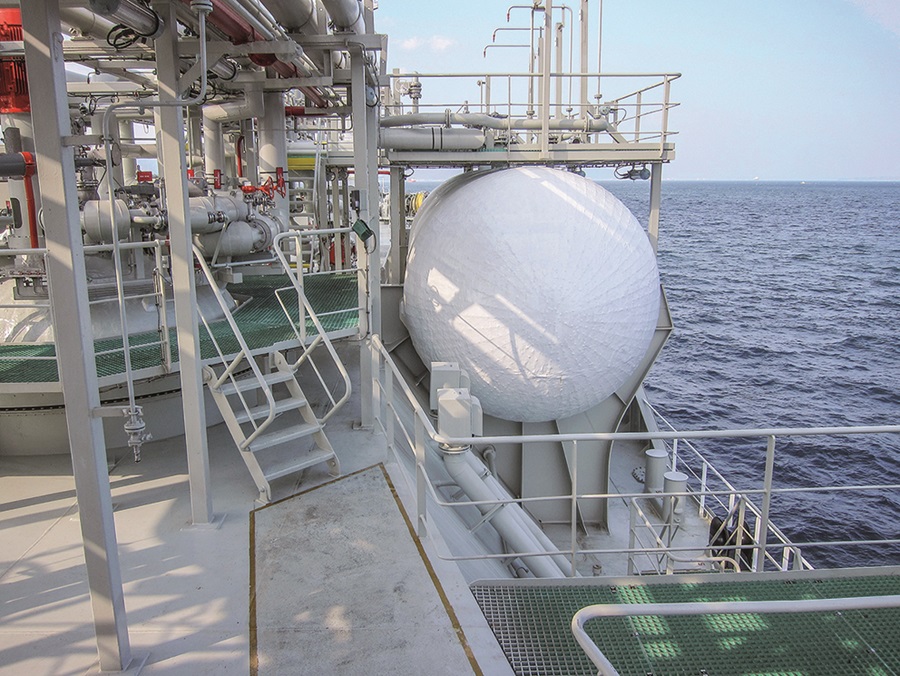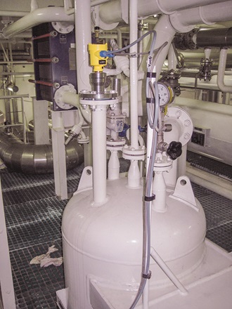 De VEGAPULS 64 meet het vulniveau in een koelsysteem aan boord van een gastanker..