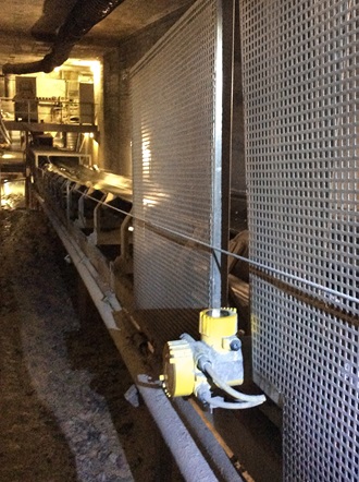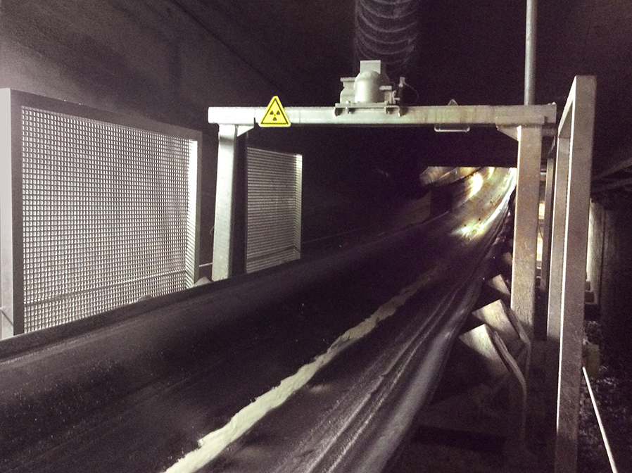 Een groot aantal transportbanden van verschillende lengtes variërend van enkele meters tot een kilometer zorgen ervoor dat de kalksteen in de uiteenlopende bewerkingsfasen op de juiste plaats terechtkomt om daar verder te worden verwerkt. De omgevingsomstandigheden zijn onmiskenbaar ruw. Met hoge snelheden tot zo'n 4 m/s transporteren de banden stenen met een diameter van 0 tot 250 mm. De transportcapaciteit kan wel 4000 t/h bedragen. Voor een gerichte belading van de latere installaties in het proces moet deze massastroom nauwkeurig kunnen worden gemeten. Op de transportbanden zijn daarom mechanische bandweegsystemen aangebracht om de passerende volumes te meten. Deze systemen zijn echter gevoelig voor verontreiniging en moeten om de paar weken worden gecontroleerd en gereinigd, iets wat gepaard gaat met aanzienlijke onderhoudskosten.