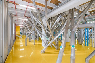 Het buizenstelsel dient ertoe de tussenproducten aan de walsenstoelen toe te voeren. Elke processtap wordt tijdens de verwerking vastgelegd.