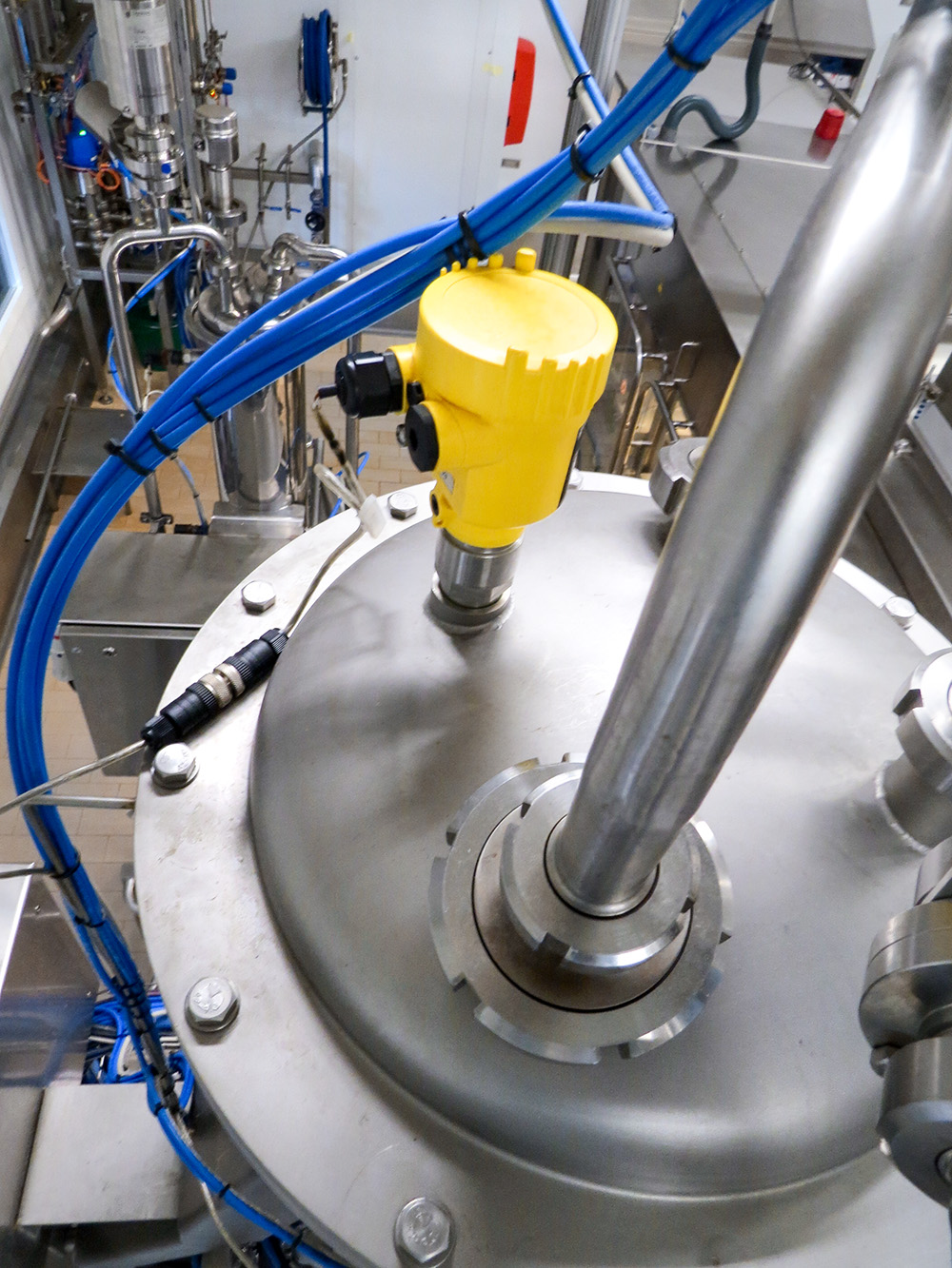 In de roer- en mengtank wordt de in de melk aanwezige melksuiker gecontroleerd verwarmd en omgezet in melkzuur. De melk wordt „dik“ en krijgt zijn zurige smaak. De ontstane yoghurt wordt teruggekoeld. Voor de verdere verwerking tot vruchtenyoghurt worden bessen, noten of graanbestanddelen door het product geroerd. Het niveau en het schakelniveau moeten worden gedetecteerd om een optimaal vulproces mogelijk te maken.