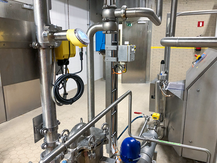 Maar één meetpunt was al jaren een zorgenkindje en moest steeds weer in de gaten worden gehouden: in dit deel van de installatie wordt de emulsie bewaakt. De hier heersende procesomstandigheden zijn typisch voor de levensmiddelenproductie. Het is er warm, de temperatuur van het gebruikte water ligt rond 85 °C en trillingen en drukstoten zijn aan de orde van de dag. De druk in de leidingen ligt over het algemeen tussen de -1 en 8 bar. Zodra de emulsie een bepaalde temperatuur bereikt, wordt ze met een hogedrukpomp verder gepompt. In dit circuit moet een constante druk aanwezig zijn om de hogedrukpomp te voeden. Om in een vroeg stadium te weten of het filter vervuild begint te raken, is daarom na de pomp een drukmeting geïnstalleerd.