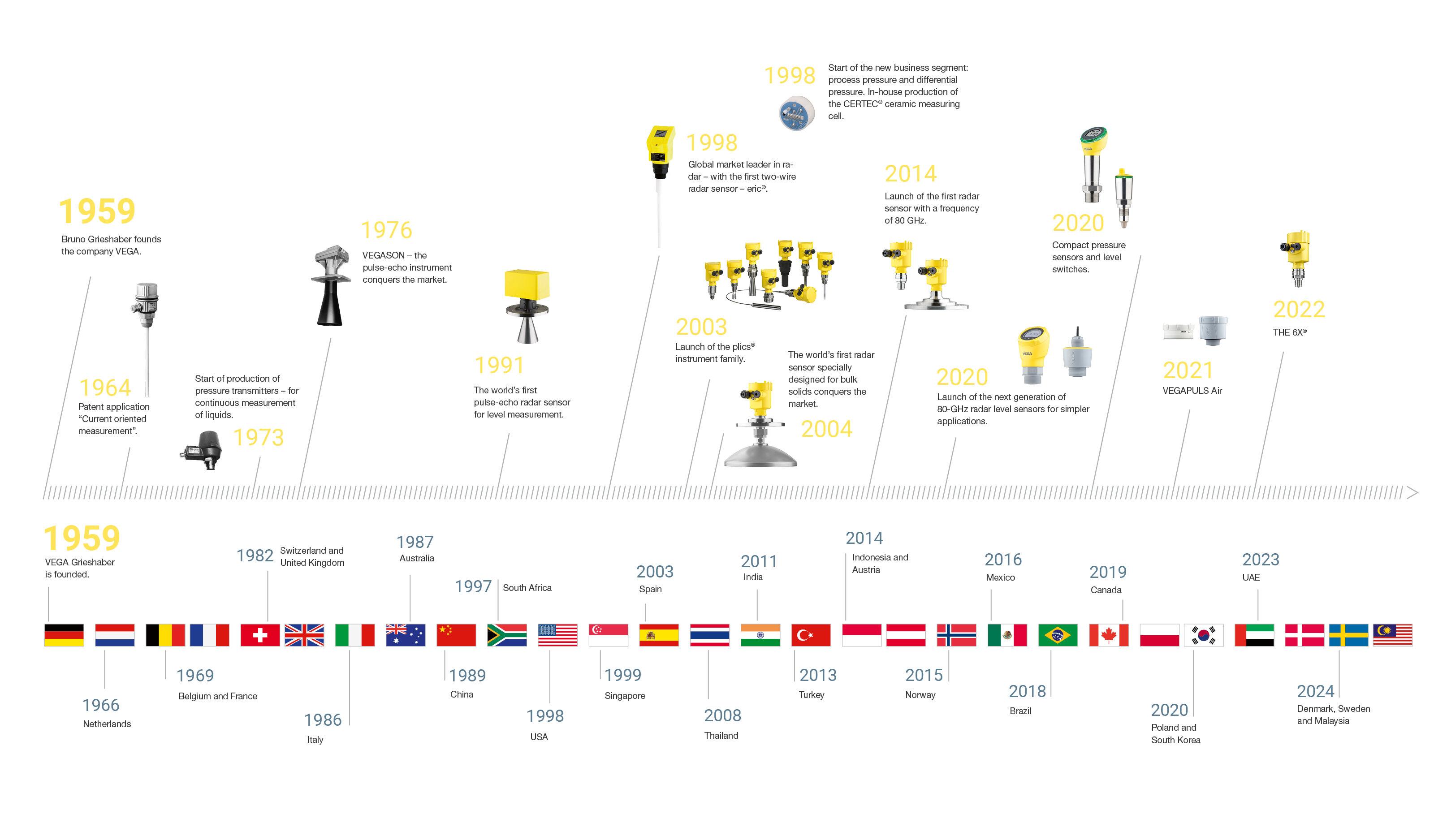 Innovaties in de meettechniek drukken al sinds het allereerste begin hun stempel op de onderneming VEGA. Precisie in niveaumeting uit het Zwarte Woud - in het verleden, het heden en de toekomst. Sinds 1959.