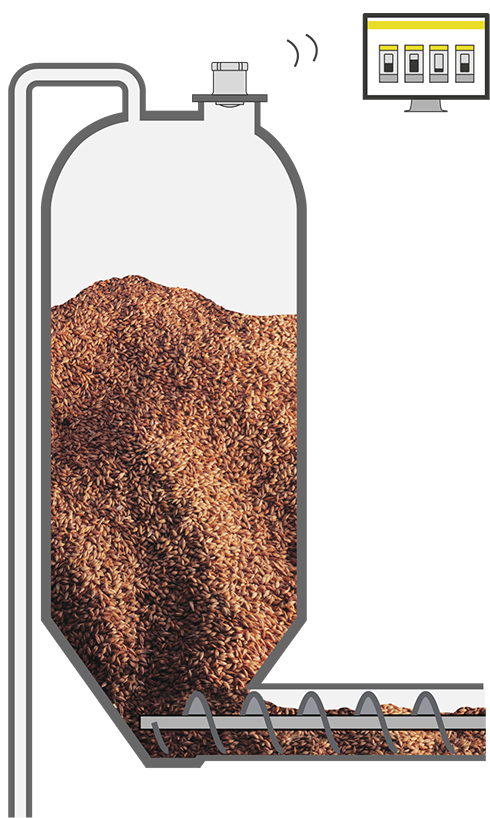 Diervoeder wordt in de landbouw opgeslagen in hoge smalle silo's. Om ervoor te zorgen dat er steeds voldoende diervoeder voorhanden is, moet het niveau in de silo betrouwbaar kunnen worden gemeten en moeten de meetgegevens draadloos kunnen worden overgedragen. Een volautomatische melding op het moment dat de voorraad moet worden aangevuld zet een bestelling bij de leverancier van het diervoeder in werking.