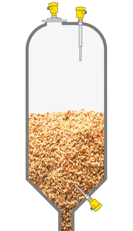Alvorens tot mout te worden verwerkt, wordt de gerst in de mouterijen opgeslagen in voorraadsilo's met een hoogte tot 20 meter. Het vullen van de silo's gaat gepaard met sterke stofontwikkeling. Tijdens het vullen en legen van de silo verandert de vorm van de stortkegel voortdurend. De niveaumeting waarborgt het lopende productieproces en meldt de vulhoogte of mogelijke schakelniveaus van het graan.