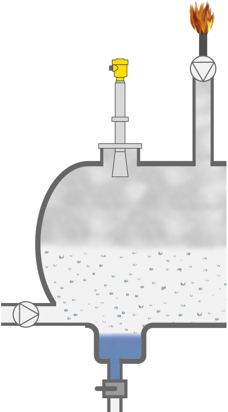 De niet verder bewerkbare gasvormige resten van de olie- en gaswinning worden in de vloeistofafscheider (knockout drum) verzameld en bij een druk die kan oplopen tot +100 bar in vloeibare toestand gebracht. De gewonnen vloeistof, het condensaat, wordt op de bodem van het vat verzameld en voor verwijdering afgevoerd. De niet vloeibaar geworden gassen worden gedecomprimeerd en in de fakkelinstallatie (flare) verbrand. Voor een efficiënte en veilige werking moet het niveau betrouwbaar worden gemeten.