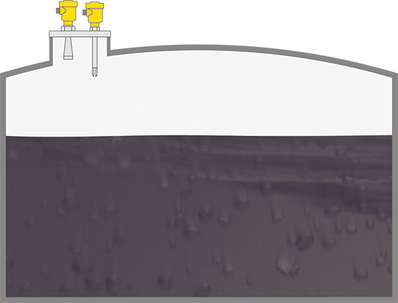 Niveaumeting en niveaudetectie in opslagtanks met vast dak