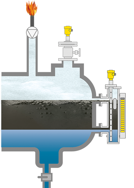 Niveaumeting in de vloeistofafscheider van fakkelinstallaties
