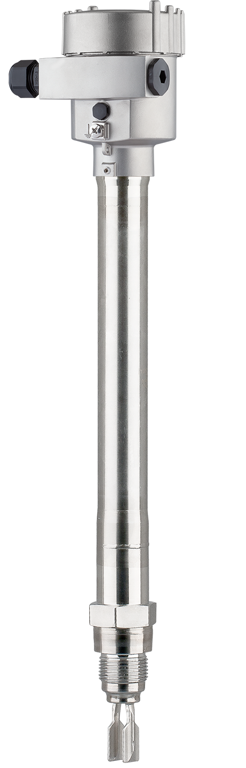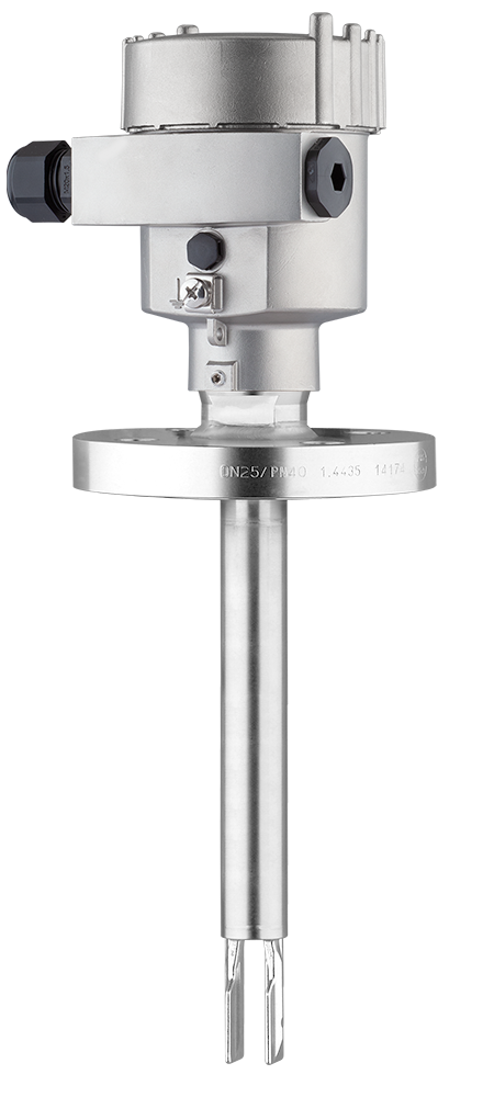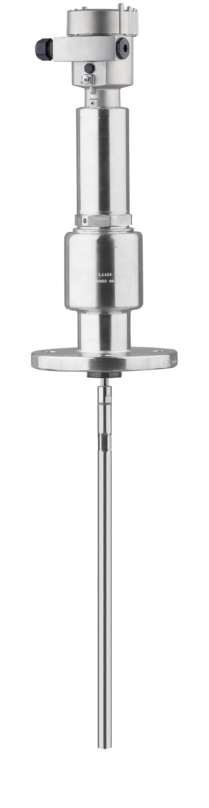 Capacitieve staafmeetsonde voor vloeistoffen die aangroei veroorzaken en voor lichte, niet-abrasieve stortgoederen.