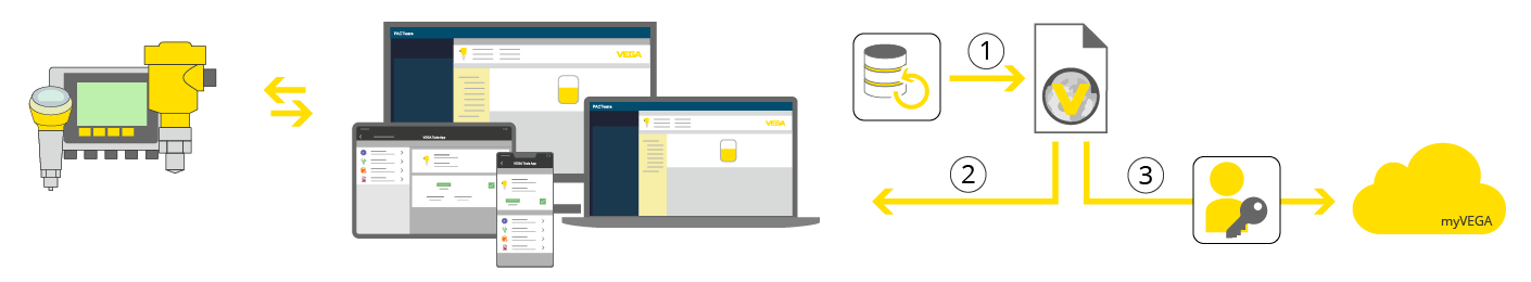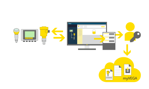 VEGA biedt de mogelijkheid de gegevens lokaal op een eindapparaat te beheren of ze via een persoonlijk account in myVEGA op te slaan. Opslag in myVEGA biedt het voordeel dat de gebruiker op alle eindapparaten en op elk moment via de VEGA-website over de gegevens kan beschikken.