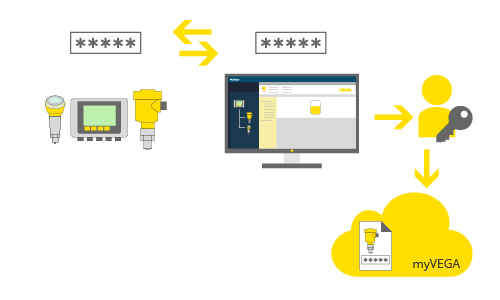 Met de service 'PINs & Codes' van myVEGA kunnen toegangs- en instrumentcodes bovendien veilig worden opgeslagen. Toegang is op elk moment en comfortabel vanaf alle bedieningsapparaten mogelijk.