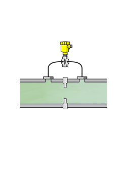 MontageHet drukverschil wordt bepaald via een differentiaaldrukmeter. Schroefdraad of flensaansluitingen maken inbouw mogelijk in een verscheidenheid aan procesaansluitingen op buizen. De drukwaarden worden via chemical seal aan de sensor overgedragen. AansluitingHet instrument wordt met een standaard tweeaderige kabel aangesloten. InbedrijfnameZodra een plausibele meetwaarde is gevonden, wordt de bijbehorende stroom op de signaalkabel uitgestuurd. De waarde komt overeen met het actuele debiet, gerelateerd aan het maximale meetbereik. |