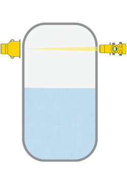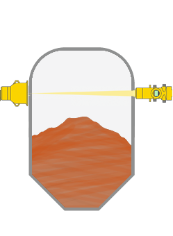 FunctieBij de radiometrische meting zendt een isotoop gammastralen uit. De sensor aan de tegenover liggende zijde van de tank ontvangt de straling. De detector van de sensor zet de gammastraling om in signalen, waarvan het aantal wordt gedetecteerd en geëvalueerd. ModelDetector = POINTRAC |