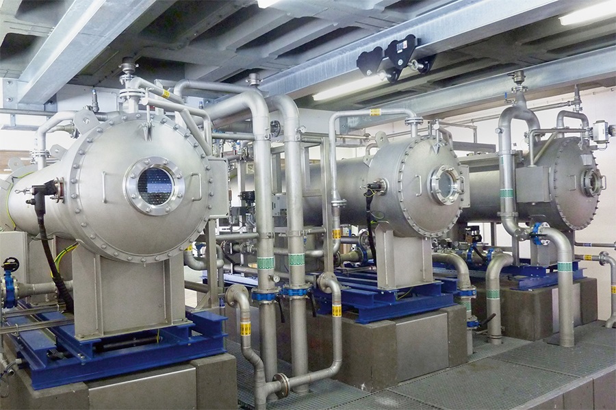 Technisch wordt ozon door middel van elektrische energie in overdrukreactoren uit zuurstof geproduceerd. Vervolgens stroomt het ontstane gasmengsel naar een ozongasverzamelleiding. De maximale ozonconcentratie ligt daar op ca. 180 g/Nm³ bij een bedrijfsdruk van 1,3 bar.