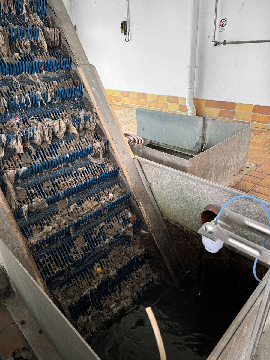 Voor het afscheiden van kleinere vaste stoffen is het fijne harkrooster verantwoordelijk. Radarsensoren meten het waterpeil voor en achter het rooster.